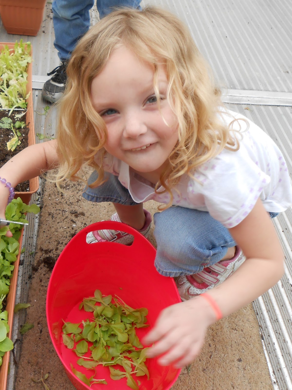 Our vegetable (container) garden was a big success. The children harvested their vegetables, cleaned them, and made a large salad. Everything that you see in this picture came from their garden except for the tomatoes. I had to purchase those since they aren't ready yet. Most of the children had seconds on salad because they said it tasted so good. I overheard two of the girls discussing how healthy the salad was for them.