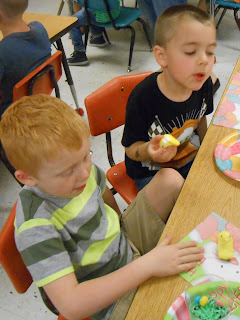 This was a first for the teacher. I've had children hunt eggs in the snow before, but someone was burning the pasture across from the school. This year we got to hunt eggs in the smoke in the afternoon class.
